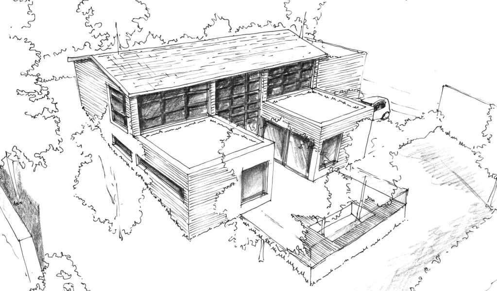 Cette architecture est une maison et fait appart ire d'un crayon mon doit et une gomme.